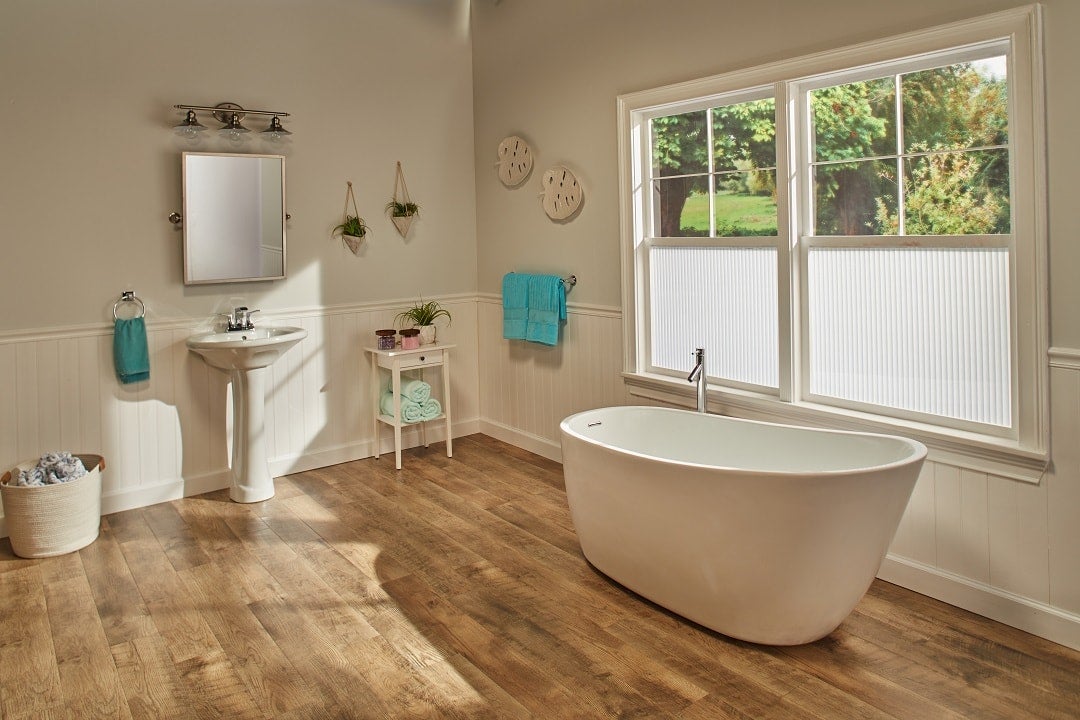 · Bathroom Flooring: Safety and serenity in these spaces is key, so these floors come in waterproof and slip-resistant options for one of your home’s busiest spaces.